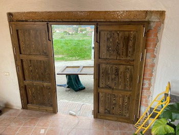 Projecte: Feina realitzada per Josep Ollé (de St. Pau Ordal). En aquesta feina he col.laborat en el desmuntatge i el muntatge d’una porta de fusta massissa formada per tres parts, una fixa i dues d’obertura, així com en el muntatge de quatre portes d’interior lacades