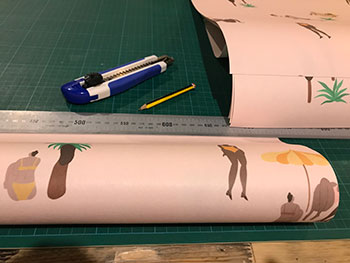 Proyecto: Entrada Hotel. Colocación de papel pintado en la entrada del Hotel. Detrás del mostrador se empapeló sobre madera, para poder acceder a las instalaciones eléctricas en cualquier momento. (www.coordonne.com)
