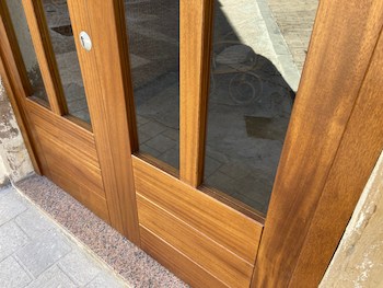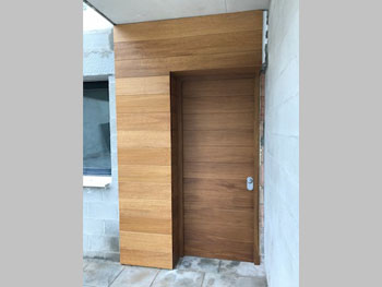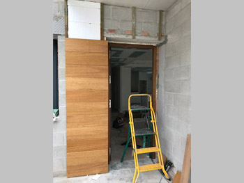 Projecte: Feina realitzada per Josep Olle (St. Pau d’Ordal). He col.laborat en el muntatge de dues portes d’entrada en dues cases diferents. En una d’elles es va panelar una part de la paret del voltant en fusta massissa.
